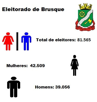 Num universo de 81.565 eleitores cadastrados, segundo dados disponibilizados pelo Tribunal Regional Eleitoral de Santa Catarina (TRE-SC), 42.509 (52,12 %) são mulheres e 39.056 (47,88%) homens. O que ainda chama a atenção é o grau de escolaridade: 29.300 (35,92%) não chegaram a finalizar o ensino fundamental (1º grau), enquanto apenas 3.808 (4,69%) terminaram o ensino superior na cidade. Pela idade, os mais velhos, com 60 a 69 anos, ainda são os que mais exercem o direito do voto, com 21.071. Próximo a eles estão os jovens de 25 a 34 anos, chegando a 20.242 pessoas.