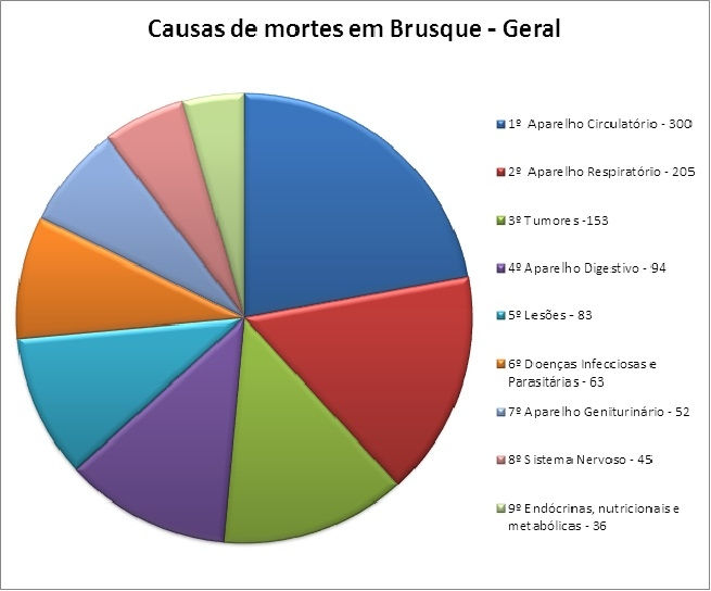 O Observatório Social de Brusque e Região, com apoio de alunos do Centro Universitário de Brusque (Unifebe), realizou um estudo sobre as nove principais causas de mortes ocorridas nos hospitais da cidade, entre homens e mulheres, nos últimos quatro anos, analisando um total de 1.049 casos, cujas tabelas demonstram de maneira precisa o resumo da pesquisa.