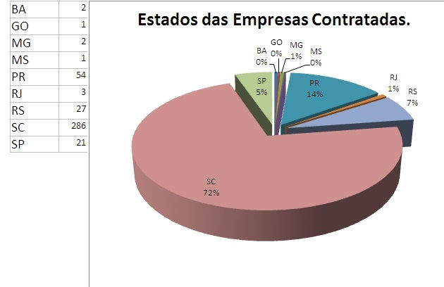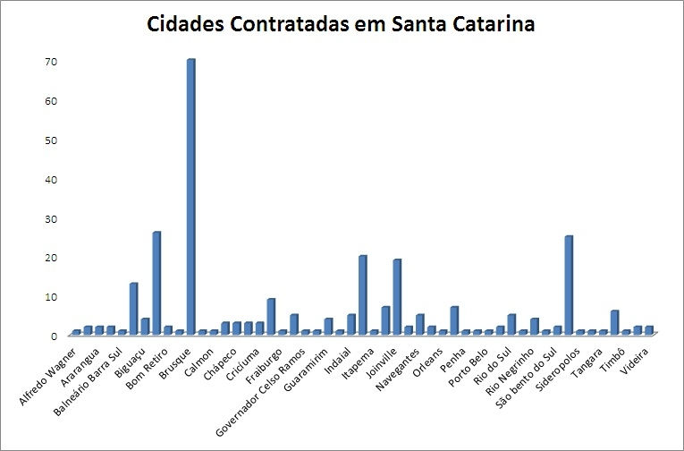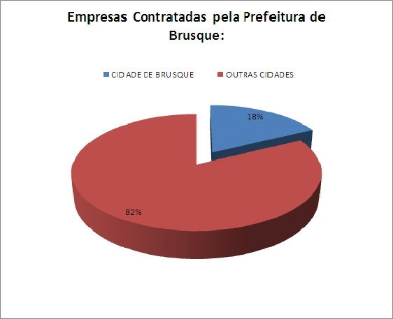 No ano pesquisado, 397 empresas de todo o Brasil participaram das licitações no município. Destas, 70 são de Brusque e, de modo óbvio, 327 foram de outras cidades, contabilizando 18% de empresas do município.